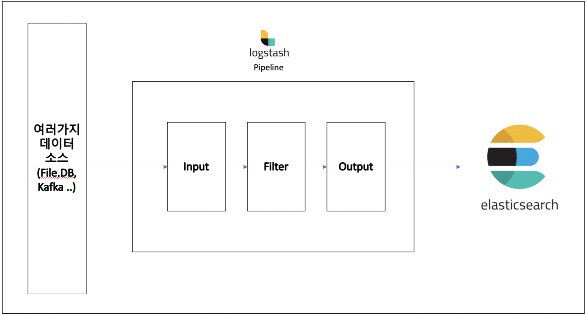 그래서 일반적으로 Logstash를 파이프라인으로 이용하는데 아래 그림과 같다.