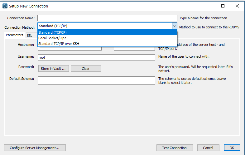 그리고 Test Connection으로 연결 상태를 확인한 후 문제가 없다면 OK를 누른다.