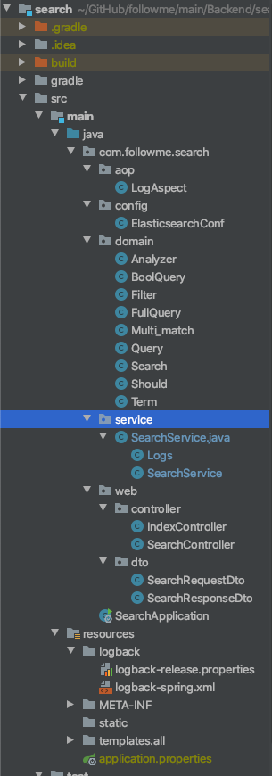 이러한 요청을 보내기 위해 만든 스프링부트의 파일 구조는 다음과 같다.